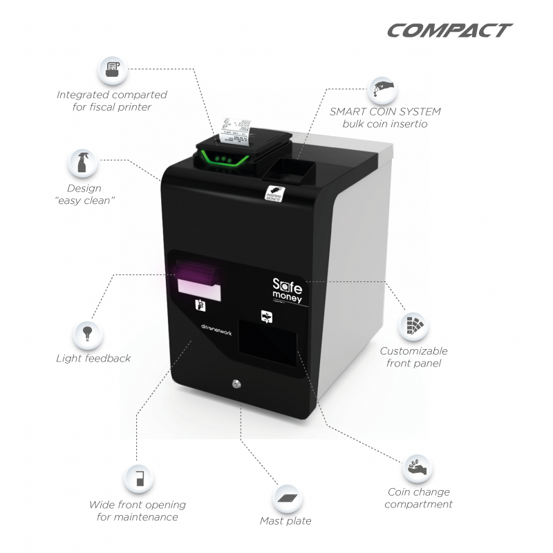 Automatic payment management solution with an “Intelligent Currency System” for faster insertion and a compartment to integrate a printer (optional). Is the ideal option to guarantee with precision, efficiency and security the management of money at the point of sale, without errors, guaranteeing it against the risk of thefts and robberies. Its elegant, minimalist design and compact size allow it to be used in any store.